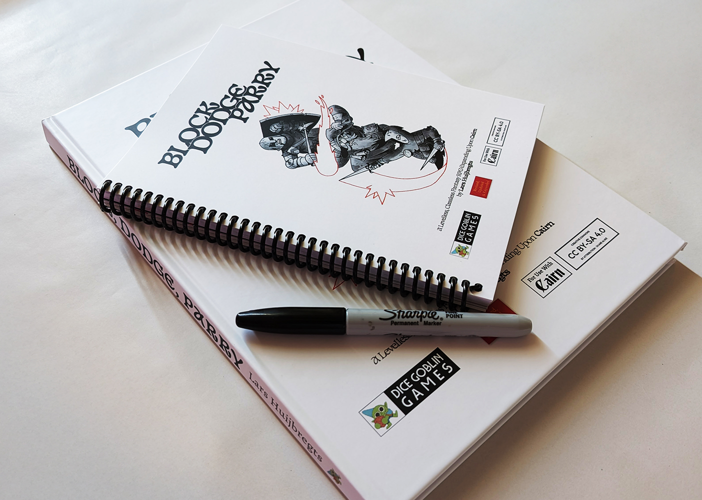 Block, Dodge, Parry is now available in Print on Demand on Lulu, in both a full-sized, hardcover A4 edition and a pocket-sized, coil bound A5 edition.