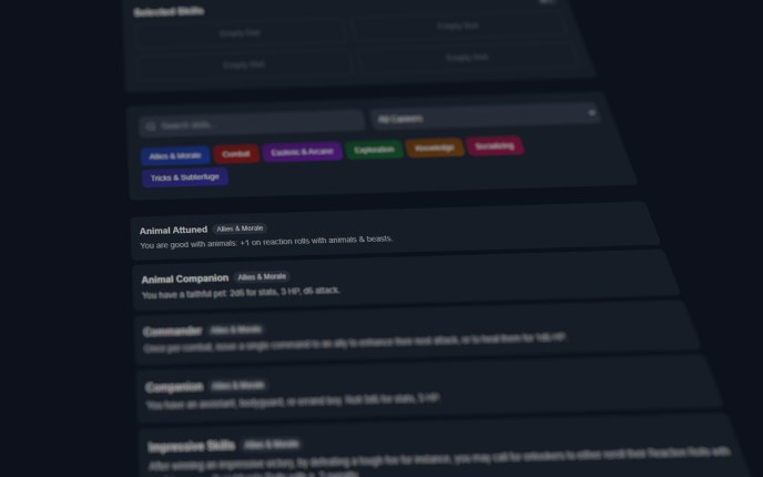 After all, you might want to make a character by looking at cool Combat skills and then making up a backstory around it, or you might want to first focus on what Careers they’ve had in the past.